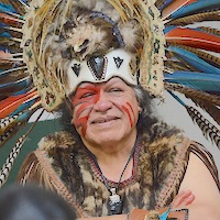 lebt seit jungen Jahren in der Tradition der mexihkas. Er ist im heutigen Otumba geboren. Vor der Eroberung von Mexiko durch die Spanier genannt Otompan und zugehörig zu Teotihuakan im Hochtal von Mexiko rund 50 km nordöstlich der Hauptstadt Mexiko Stadt. Er ist 35 Jahre alt und hat einen Sohn im Alter von 14 und eine Tochter mit 12. In der großen Familie und Teil einer heiligen Ordnung in Mexiko Er hat den Rang des „jefe de danza del sol“ „uey zenyeliztli tetón“. Bereits seit 18 Jahren praktiziert er den Temazkalli. Ursprünglich hat er BWL studiert, sich aber dann ausschließlich der Energie- und Heilarbeit der mexihkas gewidmet.