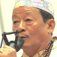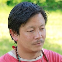 geboren im Bergdorf Dramthali, im Osten Nepals. Als 7jähriger von Ban Jhankri, dem mythischen Urahnen der Schamanen, entführt. Ging bei seinem Vater, Mangare Sherpa in die Schamanenlehre und wurde mit 15 offiziell initiiert. Man nennt ihn den König vom Kalinchok, von dem rund achthundert Schamanen lernten.