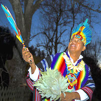 Stammesführer der Assiniboine Nordamerikas und einer der letzten Überlieferer der Heilungsrituale und heiligen Gesänge. Er will das Wissen der alten Zeremonienmeister weitergeben zur Heilung des Menschen und der Mutter Erde.